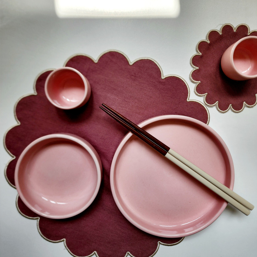 사랑스러운 분홍빛의 매력적인 칼라가 음식을 더욱 돋보이게 해 줍니다.