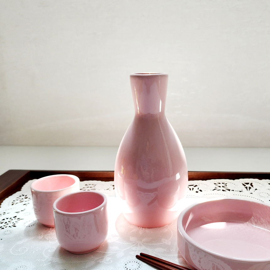 같은 색상의 분홍 주병세트와 함께