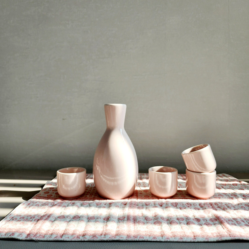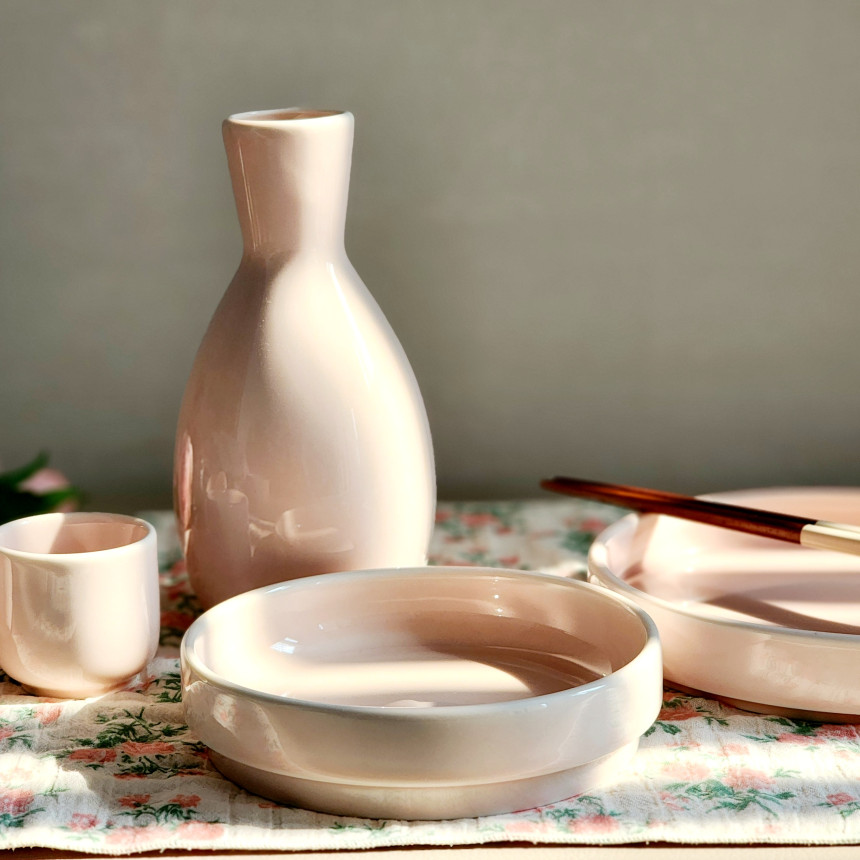 연한 분홍 색감이 아름다운 연분홍 주병세트로 식탁을 화사하고 고급스럽게 바꿔보세요.