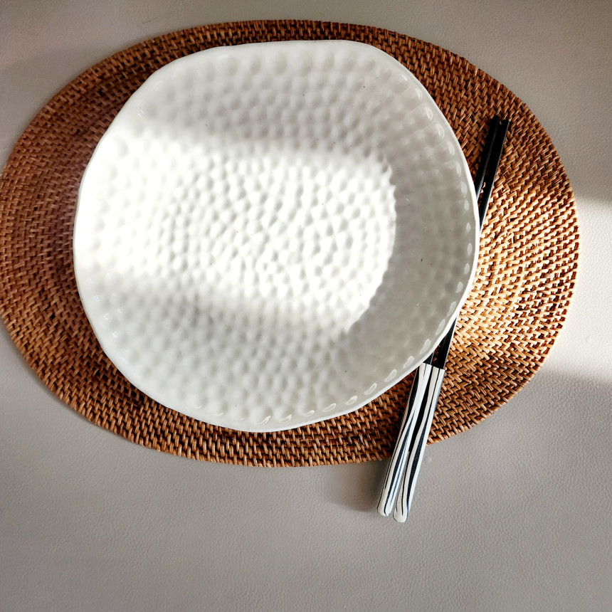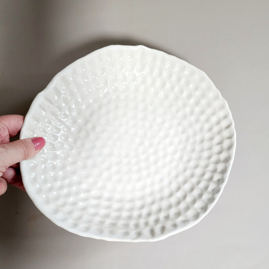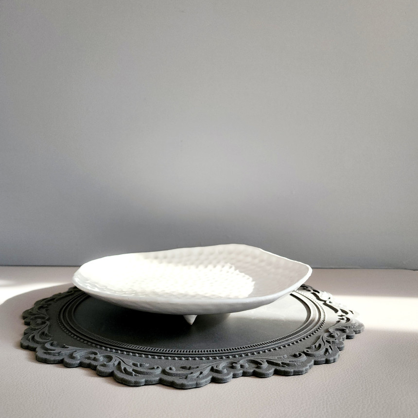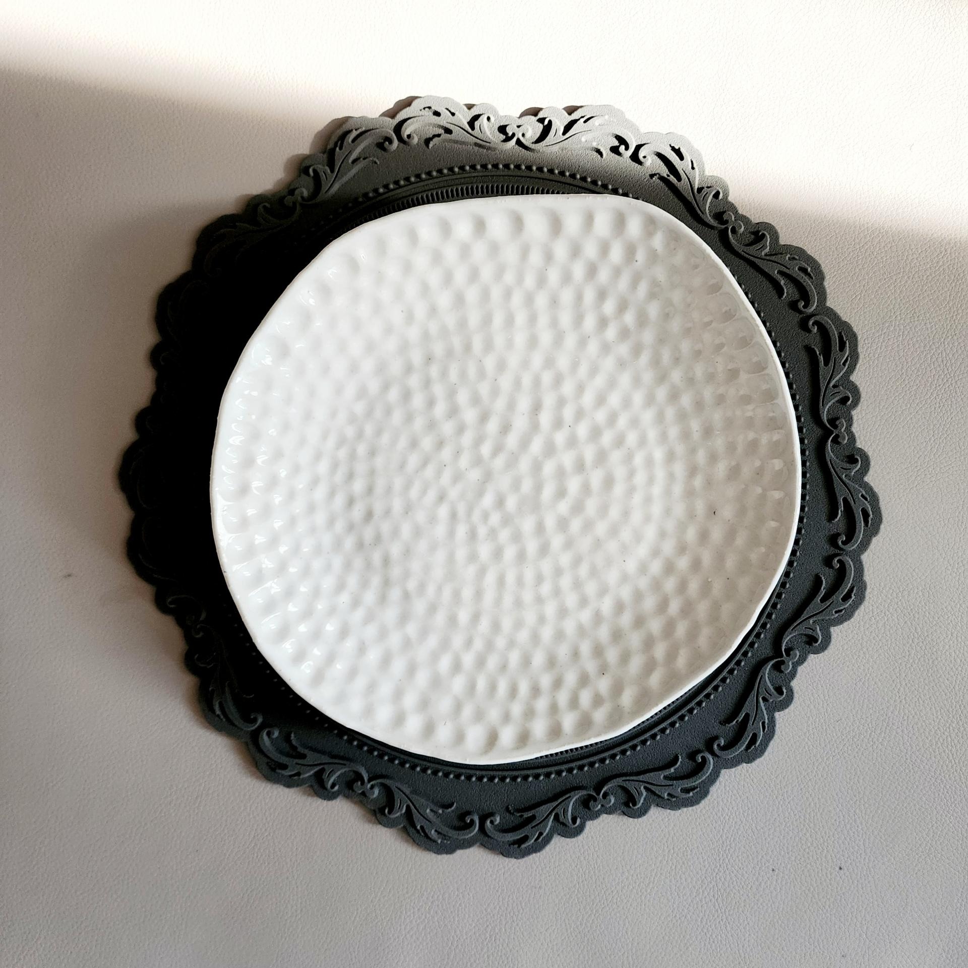 심플한 우윳빛의 유백유로 색을 표현한 카빙 플레이트로