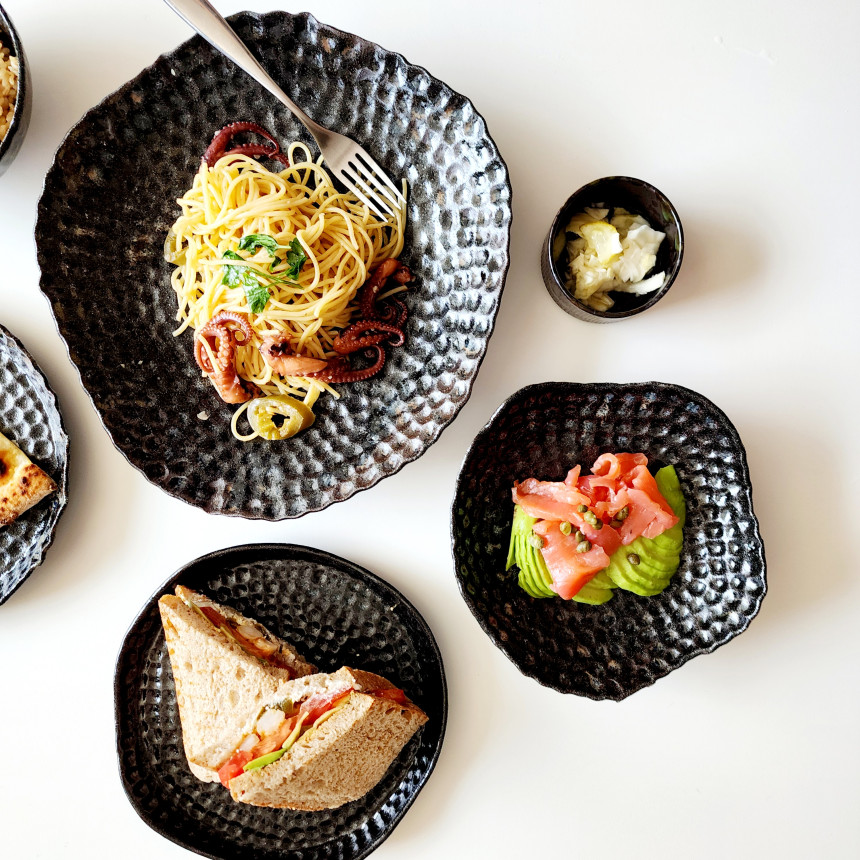 심연 시리즈 식기, 주병, 오브제 제품들이나 백자 제품들과 함께 플레이팅 하실 수 있습니다.