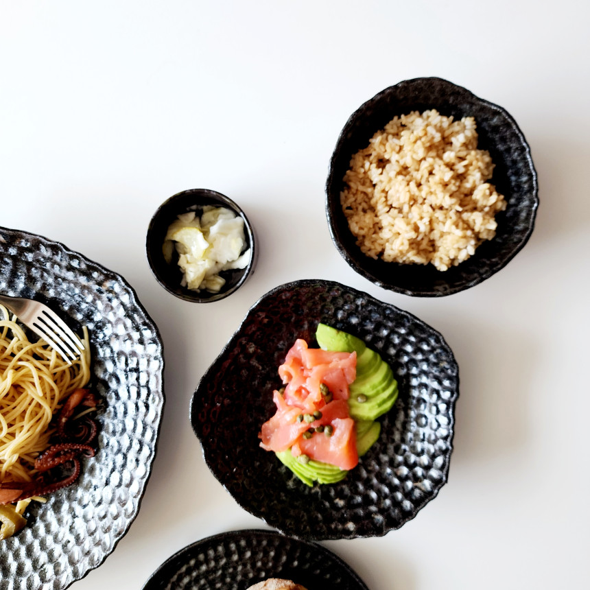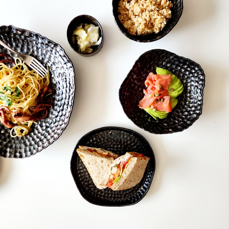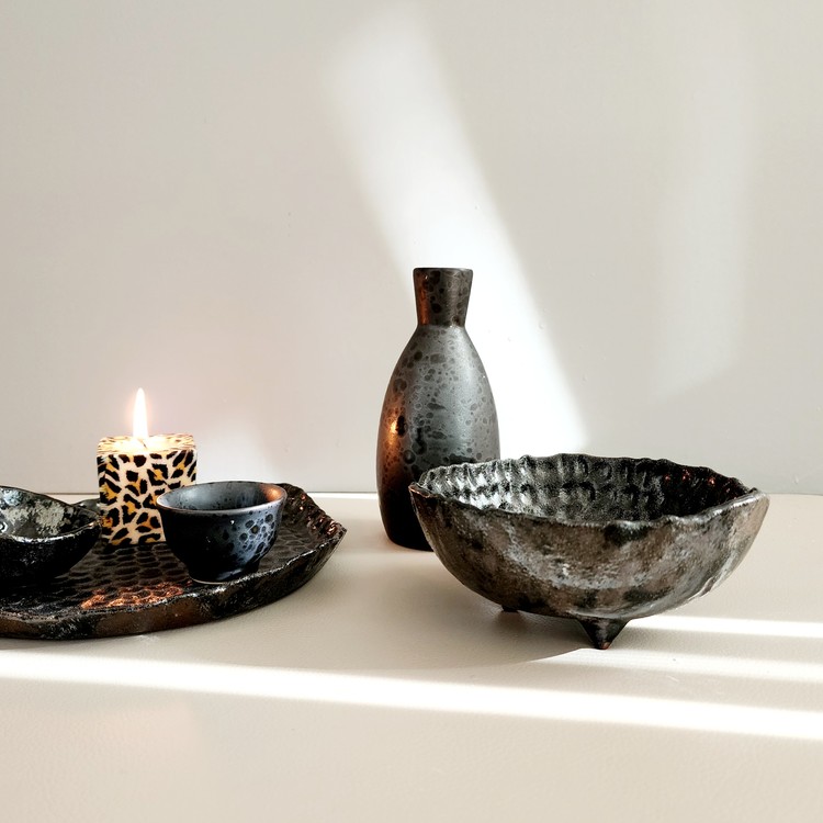 짙은 흑유로 표현한 심연 오브제 식기 제품들은