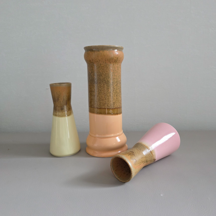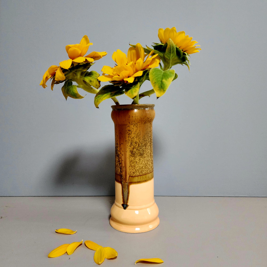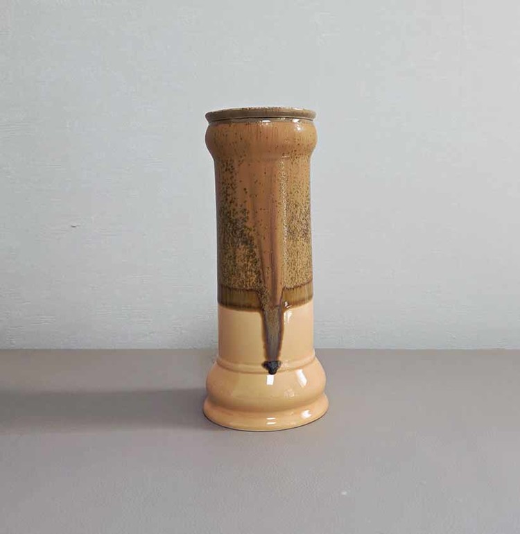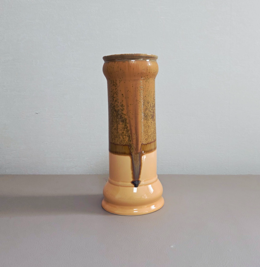 연한 살구색의 몸체에 브라운과 오렌지톤의 유약이 섞여