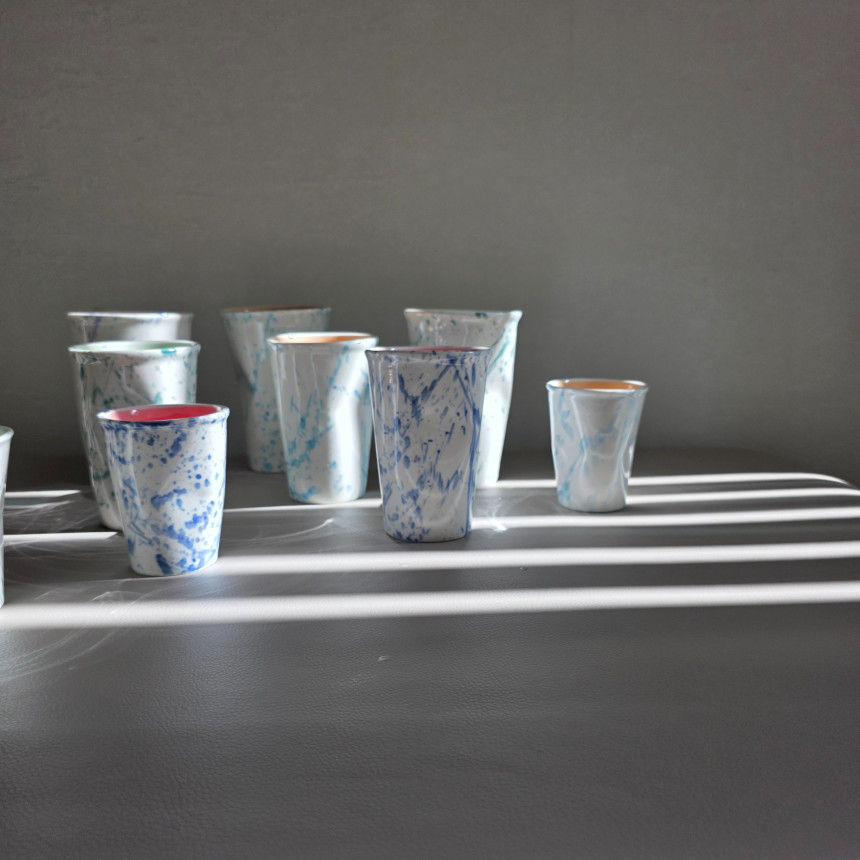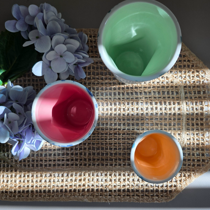 컵의 안쪽에는 대비되는 컬러풀한 색감을 배색하여