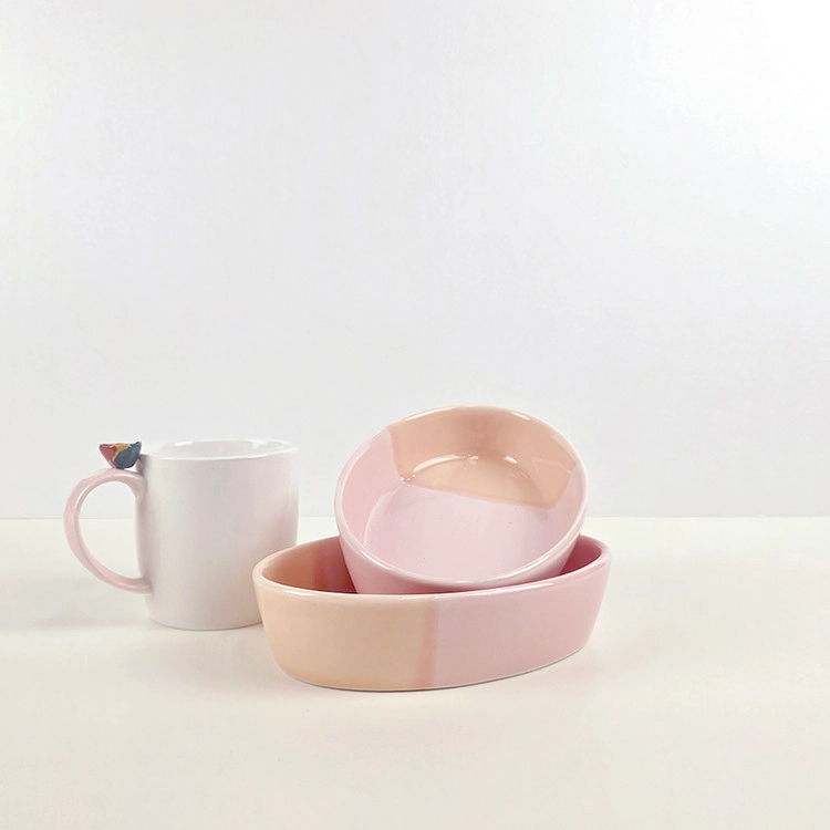 컬러풀한 색감의 타원형 찬기로
