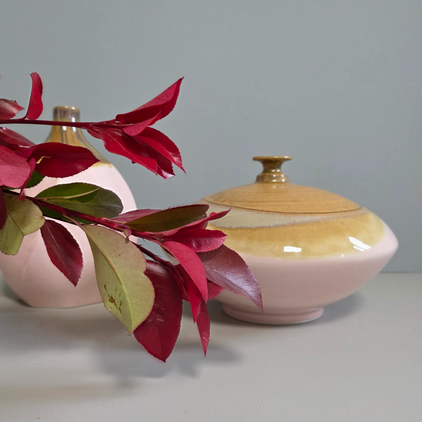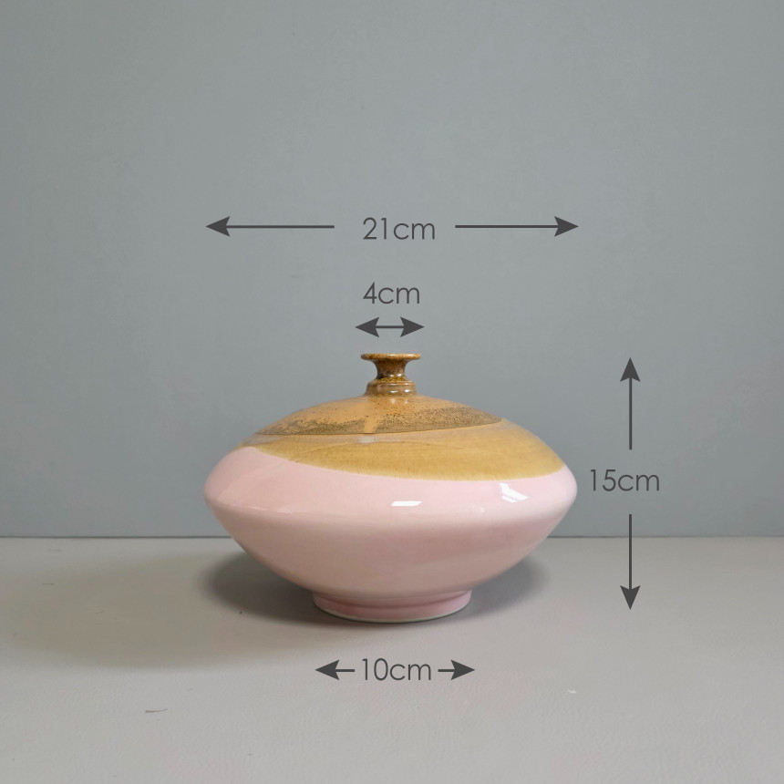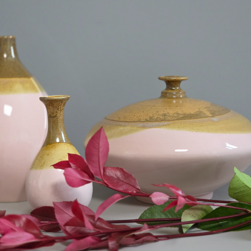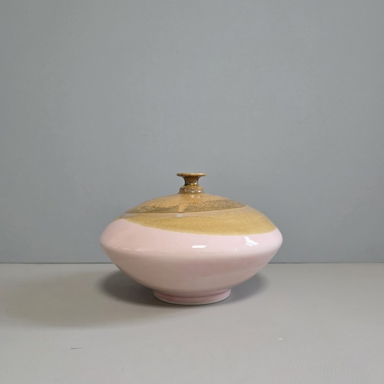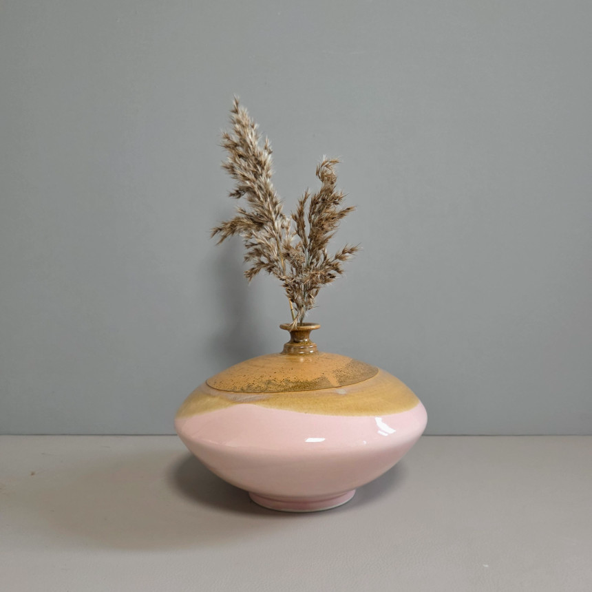 핑크 브라운 투톤의 낮은 화병입니다.