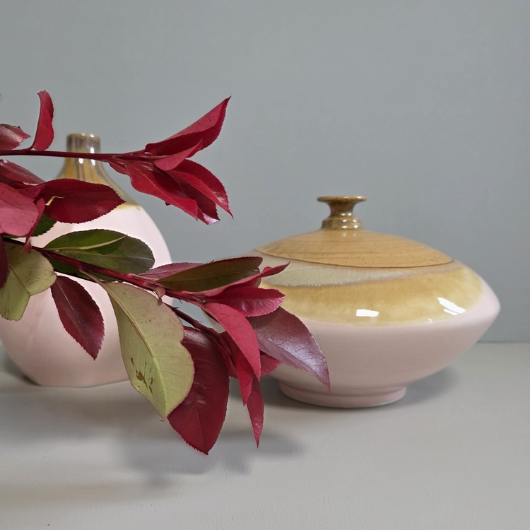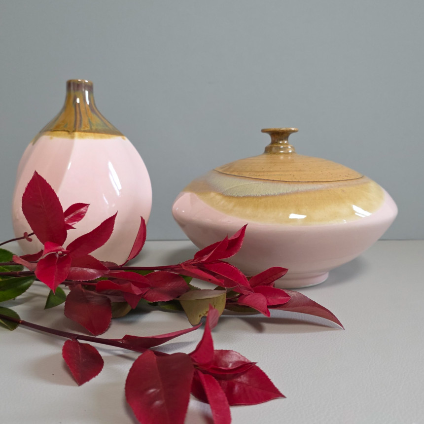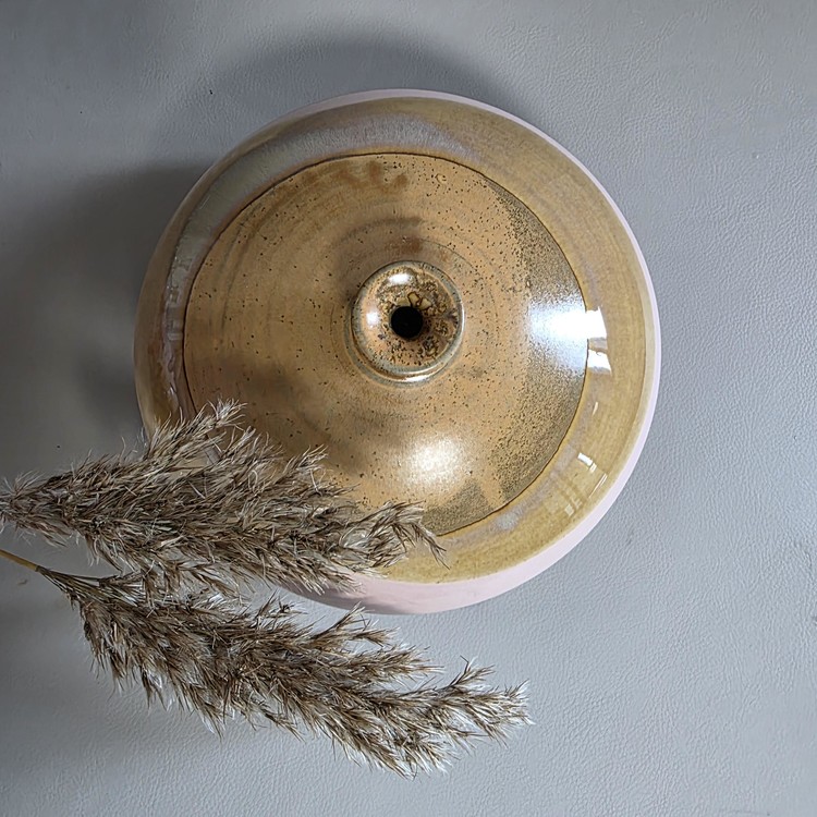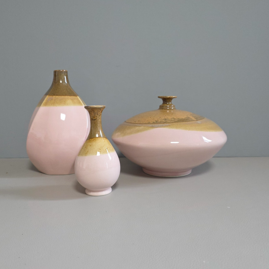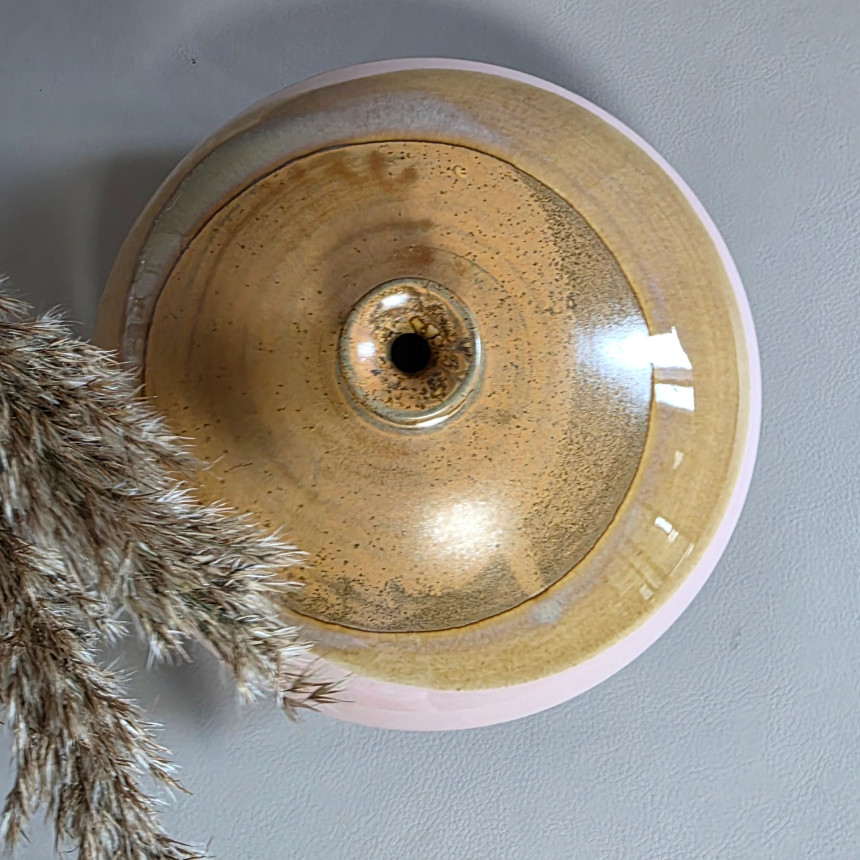 핑크 브라운 투톤의 낮은 화병입니다.