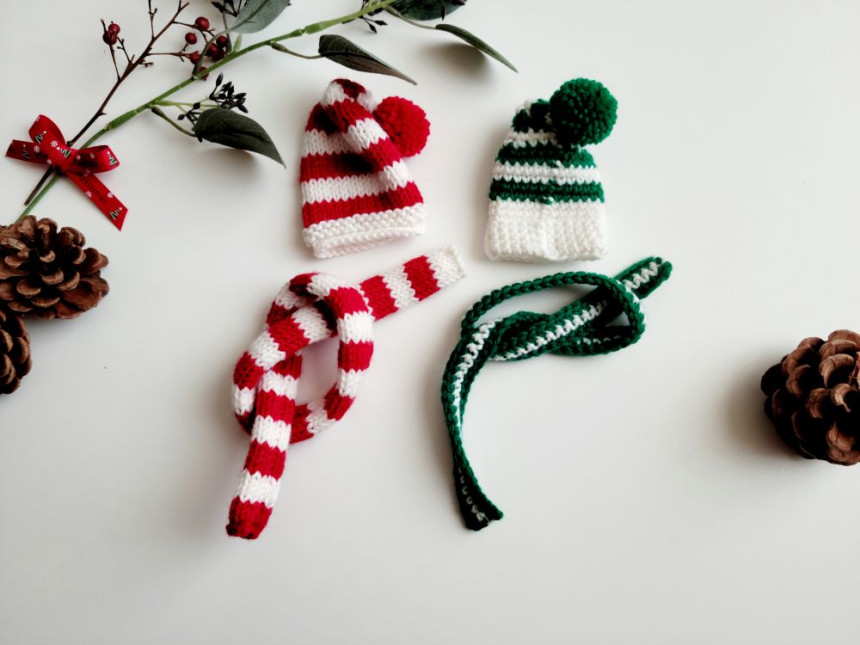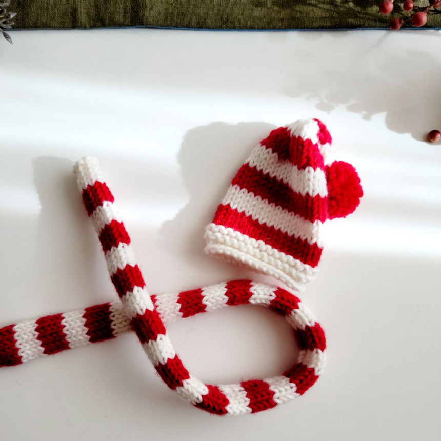 빨강 모자 : 길이 8cm /넓이 6cm, 목도리: 38cm
