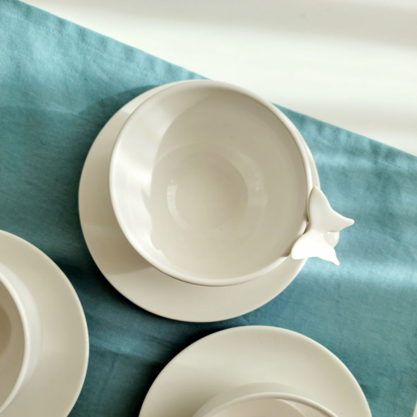 단아하고 사랑스러운 나비 백자 라테 찻잔