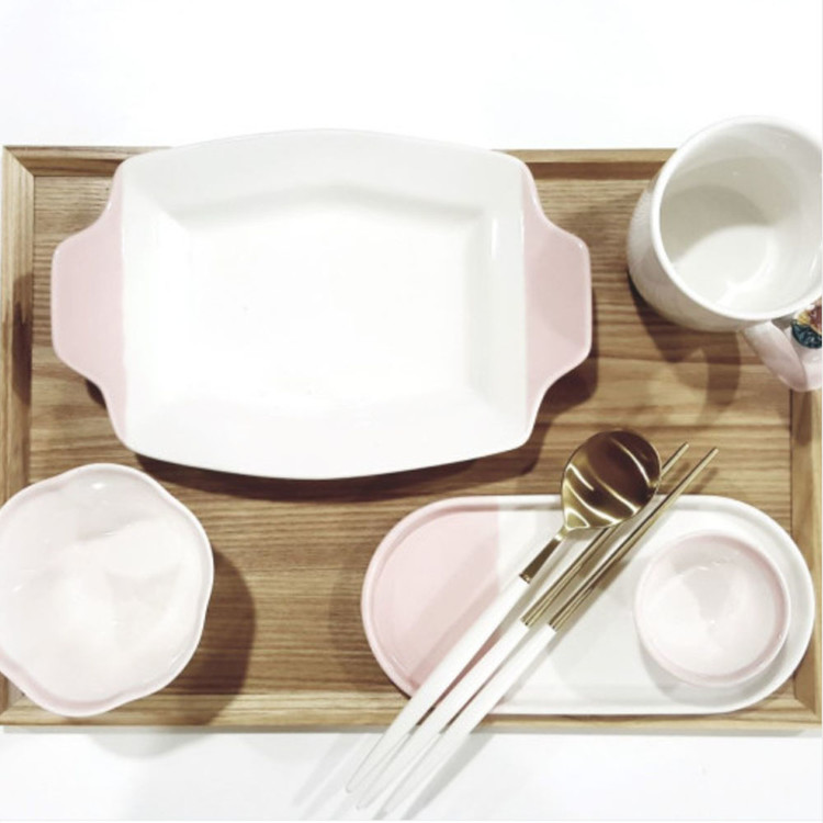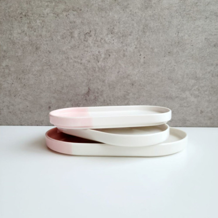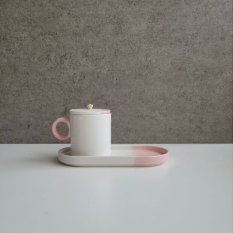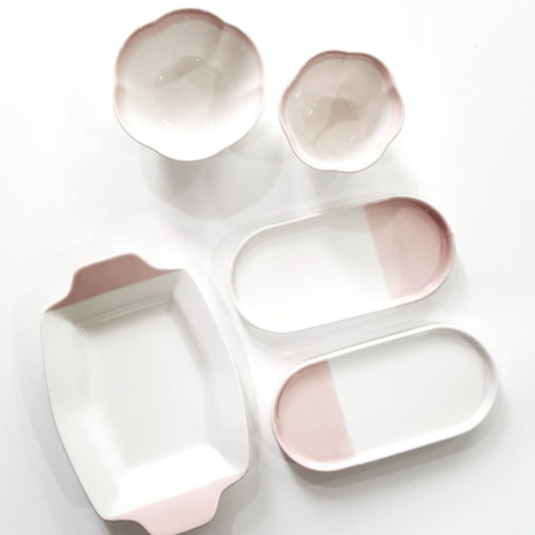 아이보리 몸체에 한쪽 부분을 핑크로 무늬를 내어