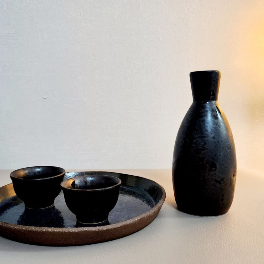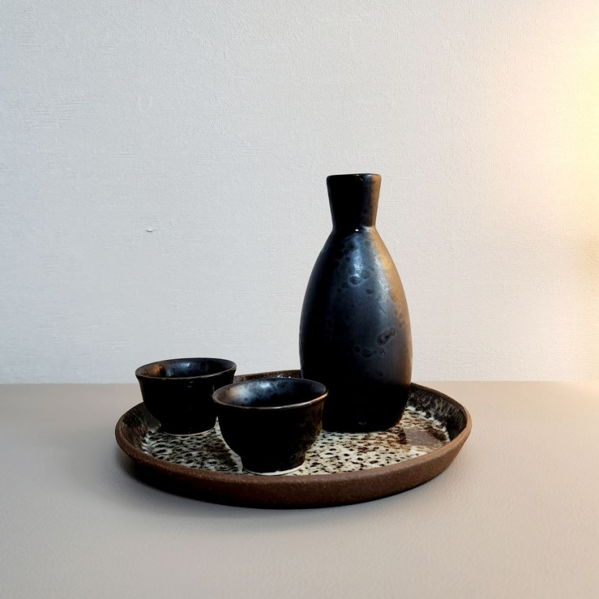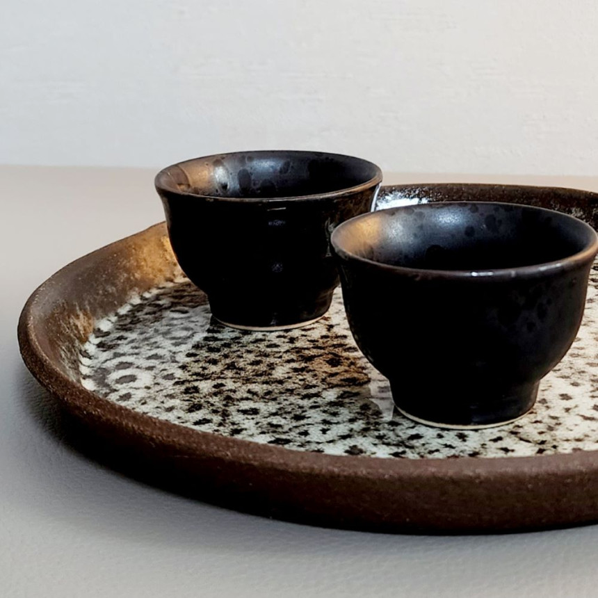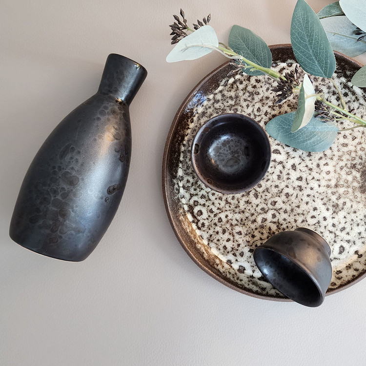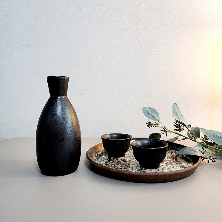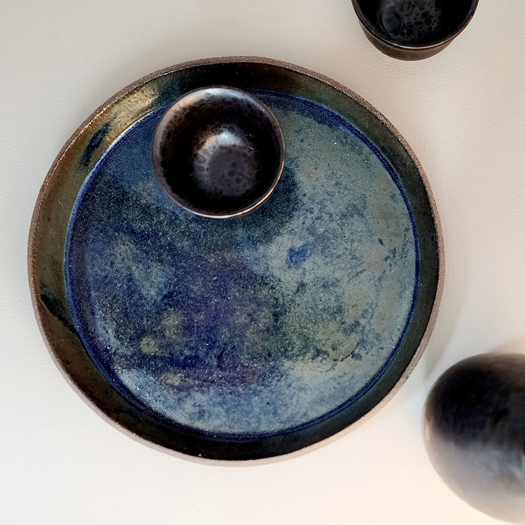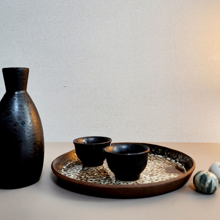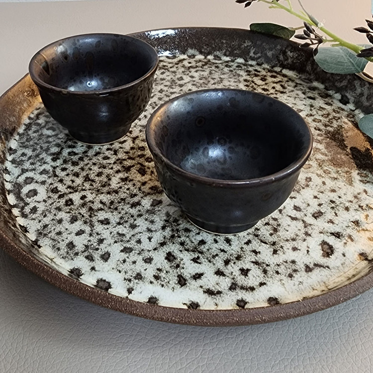 귀한 소재인 black brown 素地로 만들어진 고급스러운 접시입니다.