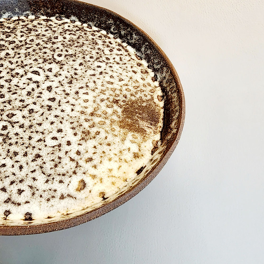 black brown 흙의 강한 색과 백유의 불규칙한 무늬가 특징이며