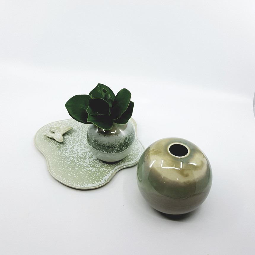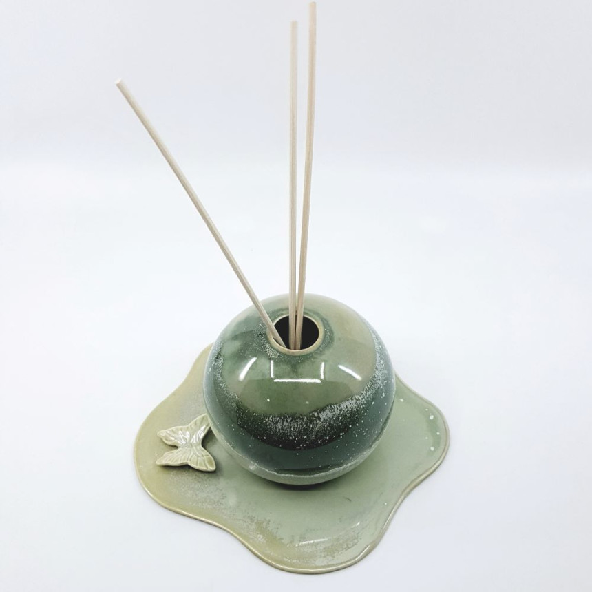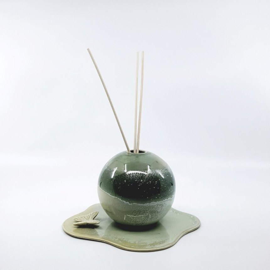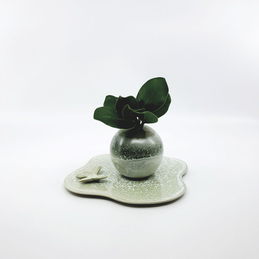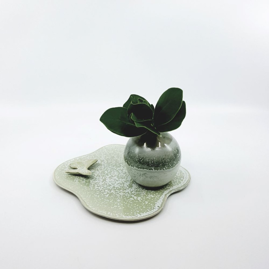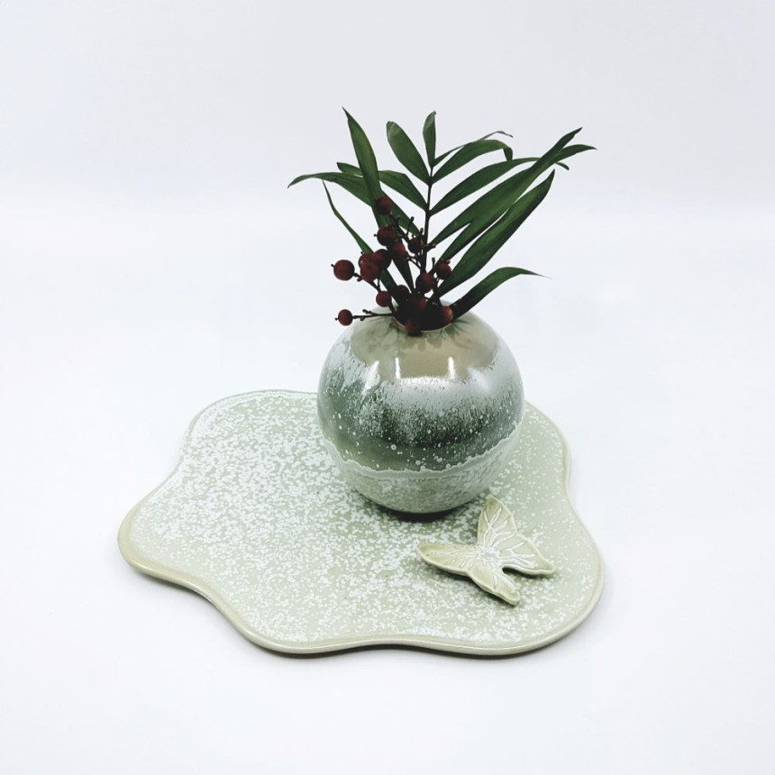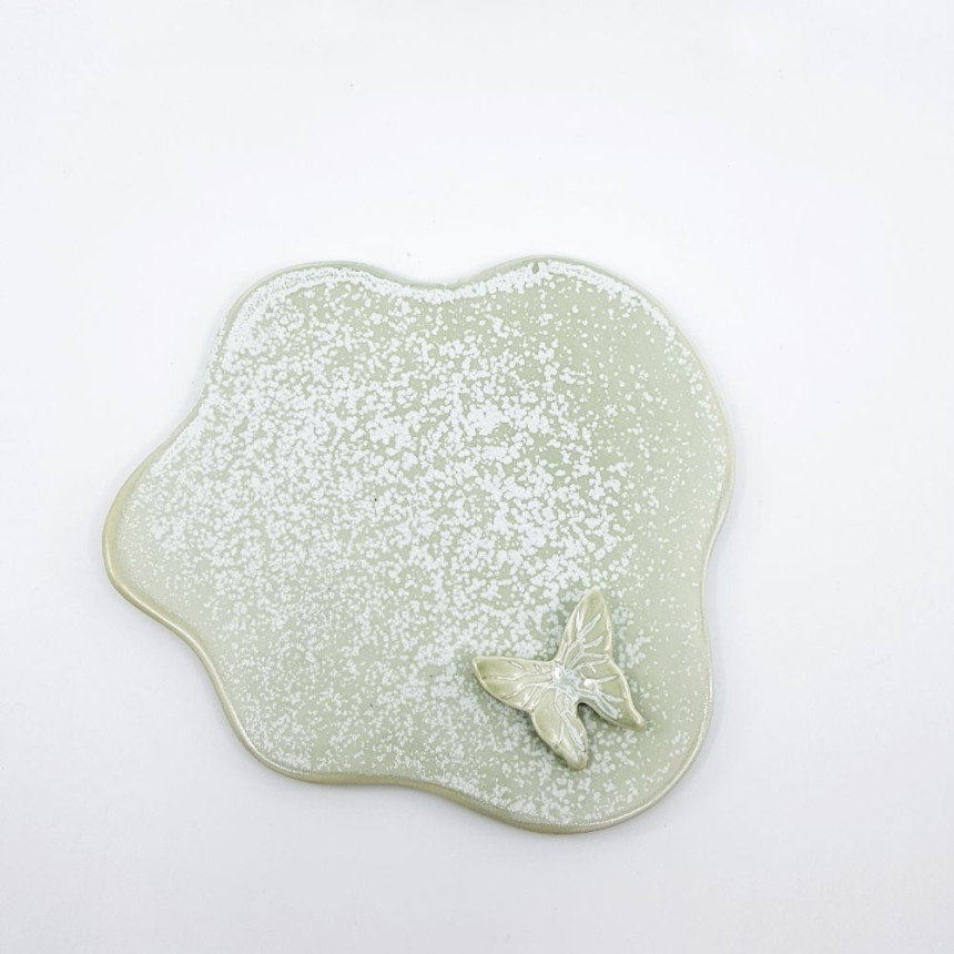 비정형 모양의 받침 위에 나비가 살포시 앉아 있어서