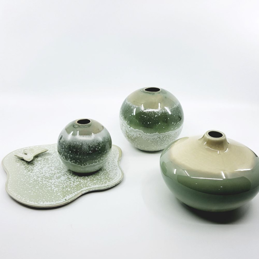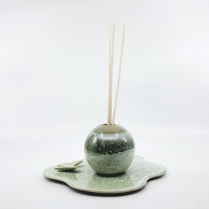 은은하고 고귀한 그린 색에 하얀 점들이 무늬를 만든