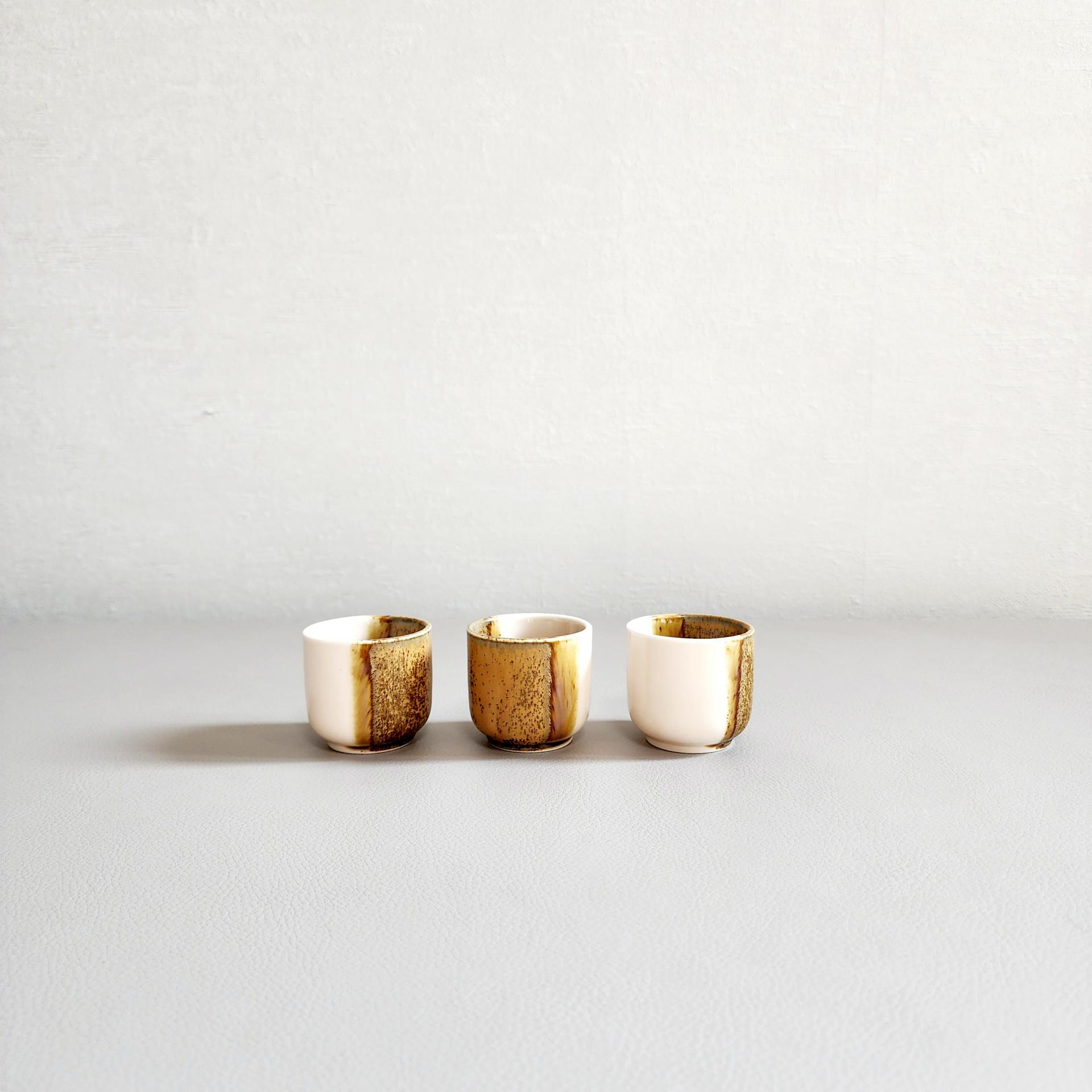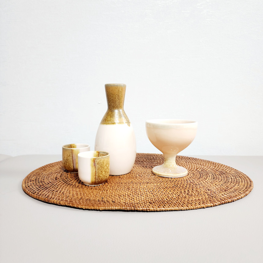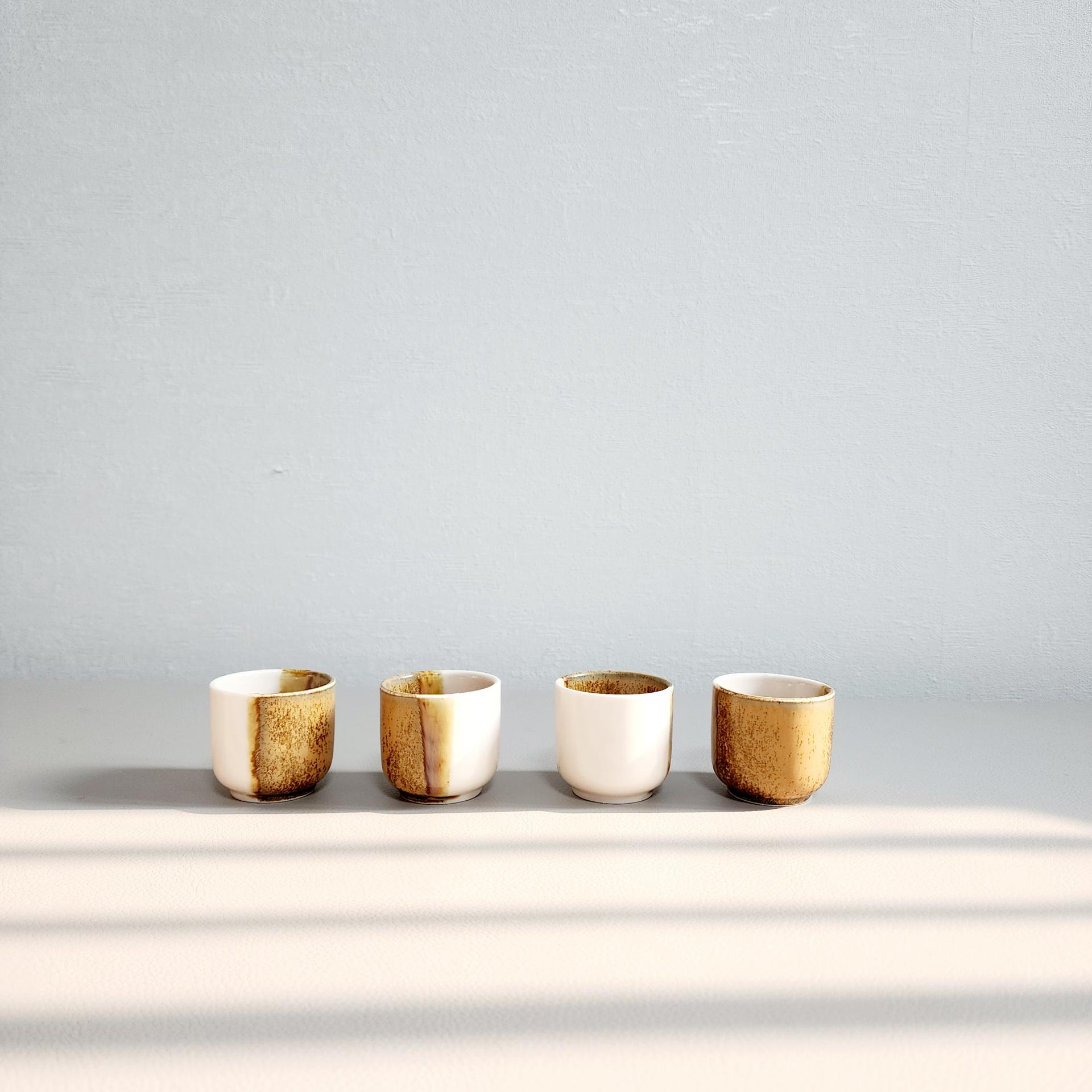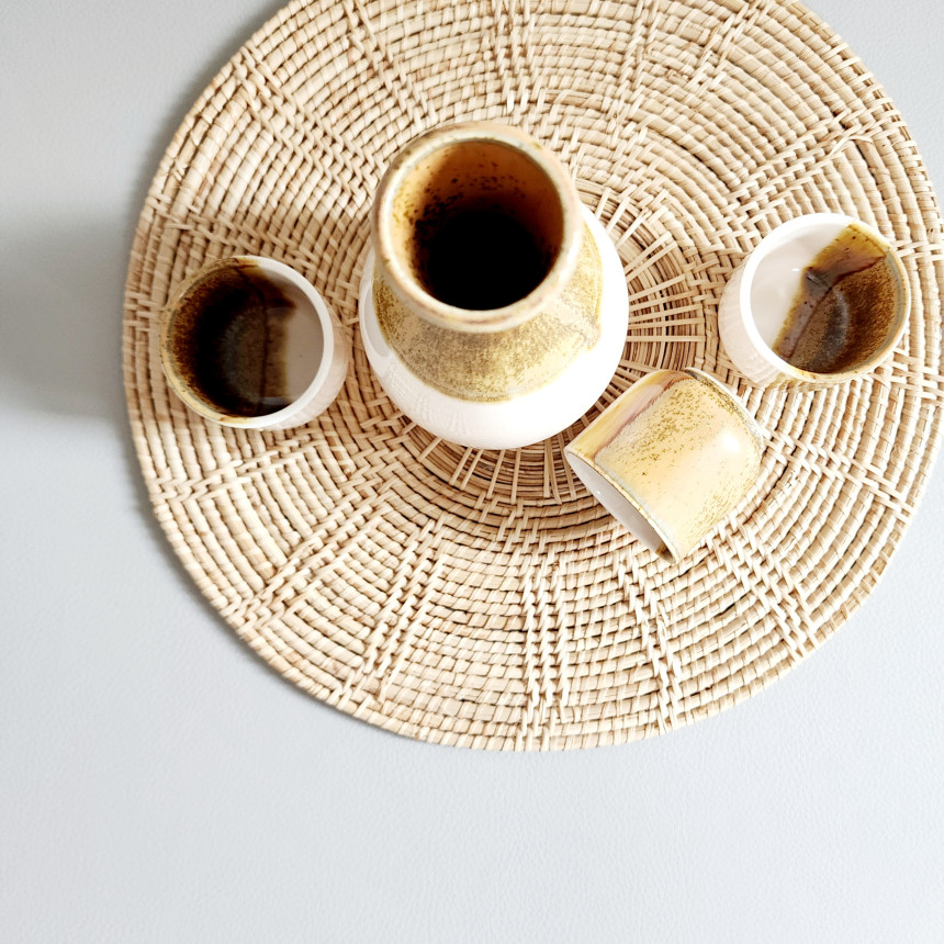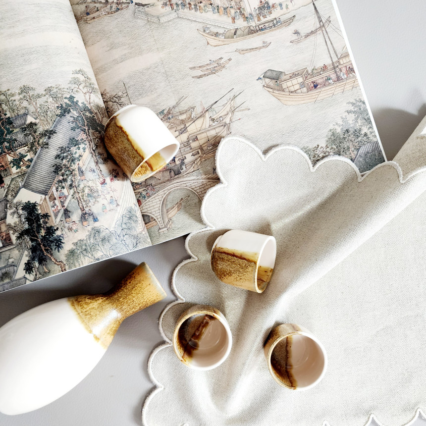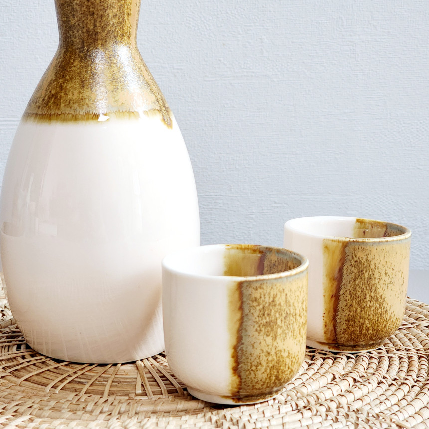 유약의 흐름이 매력적인 노을 내린 갈색 주병세트입니다.