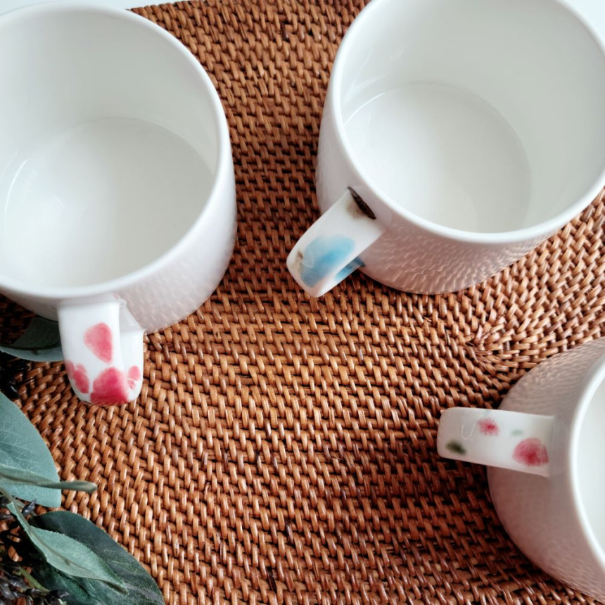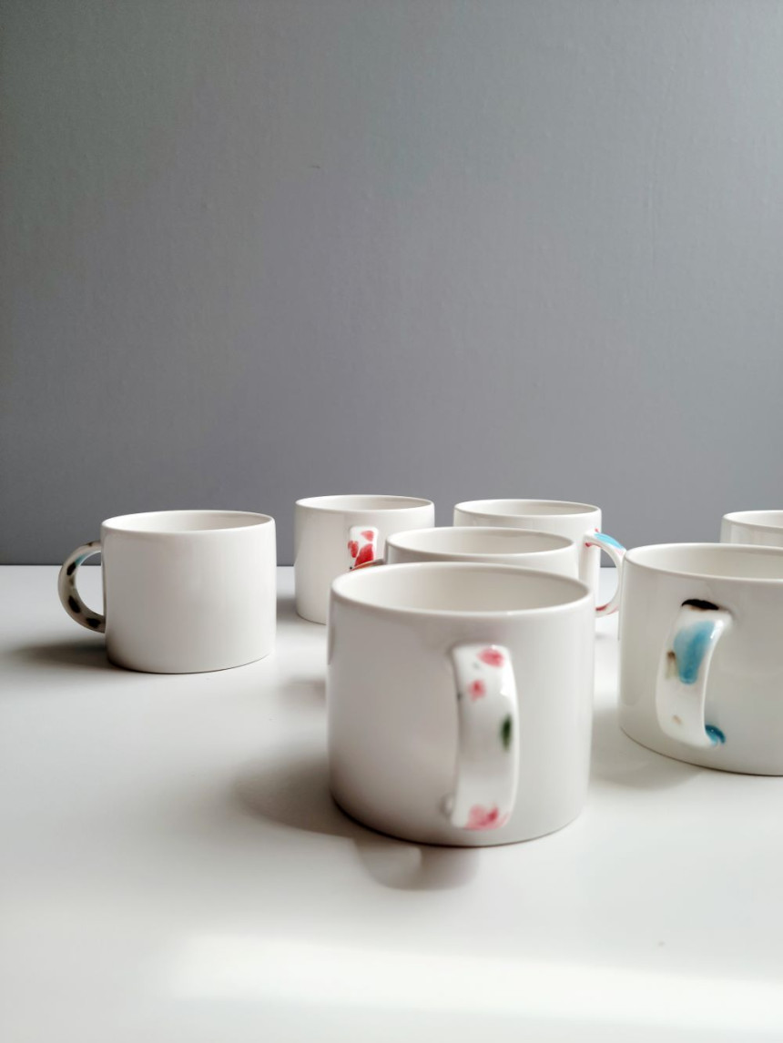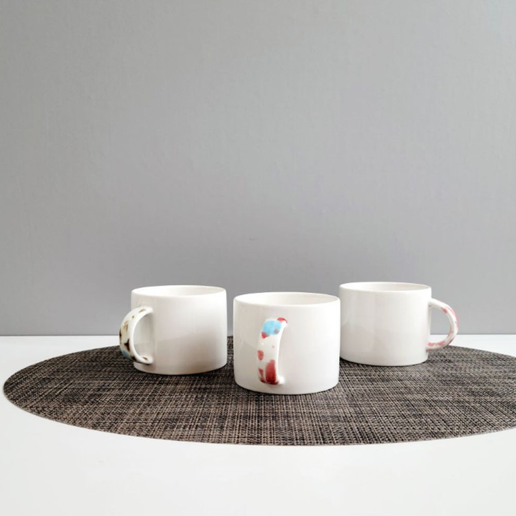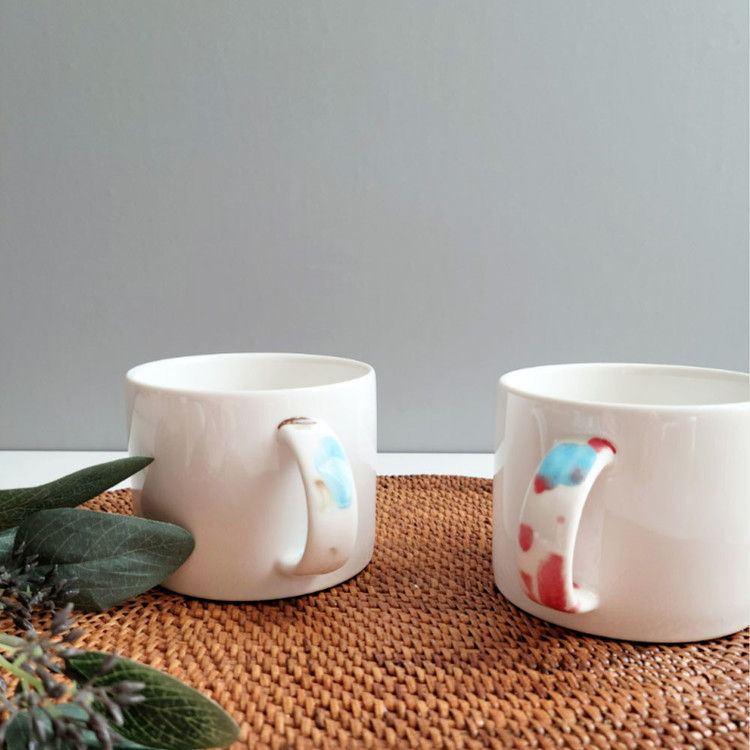 하얀 백자에 손잡이만 여러 가지 색을 입혀