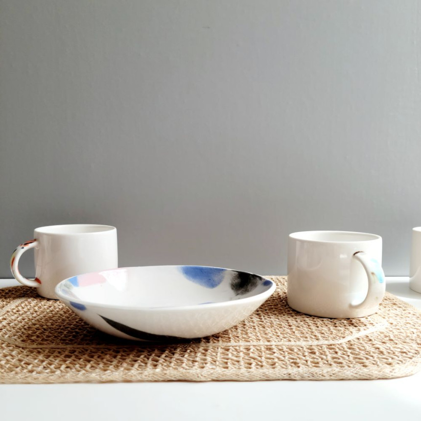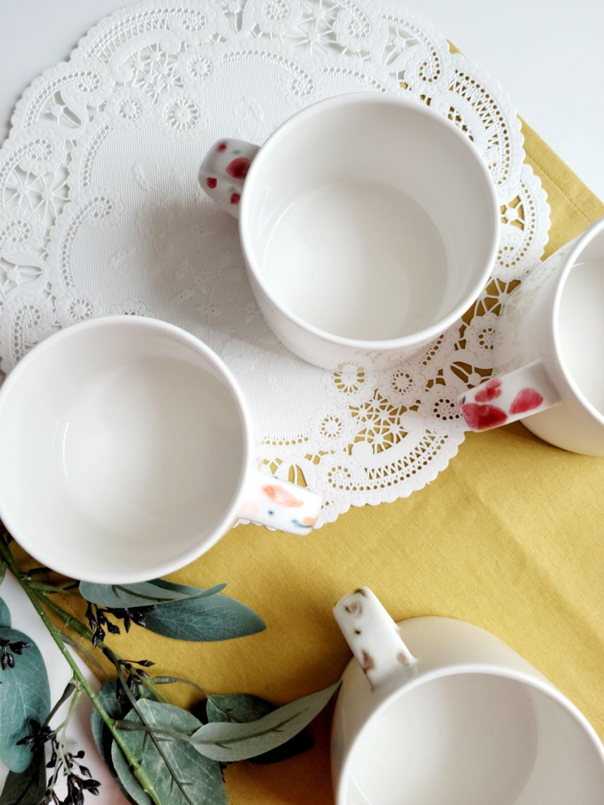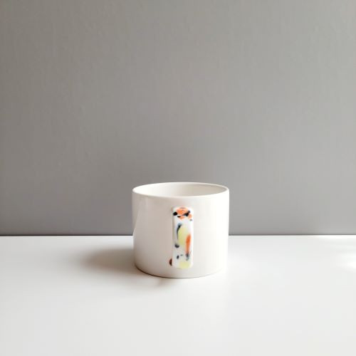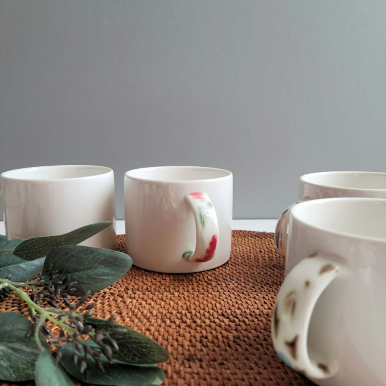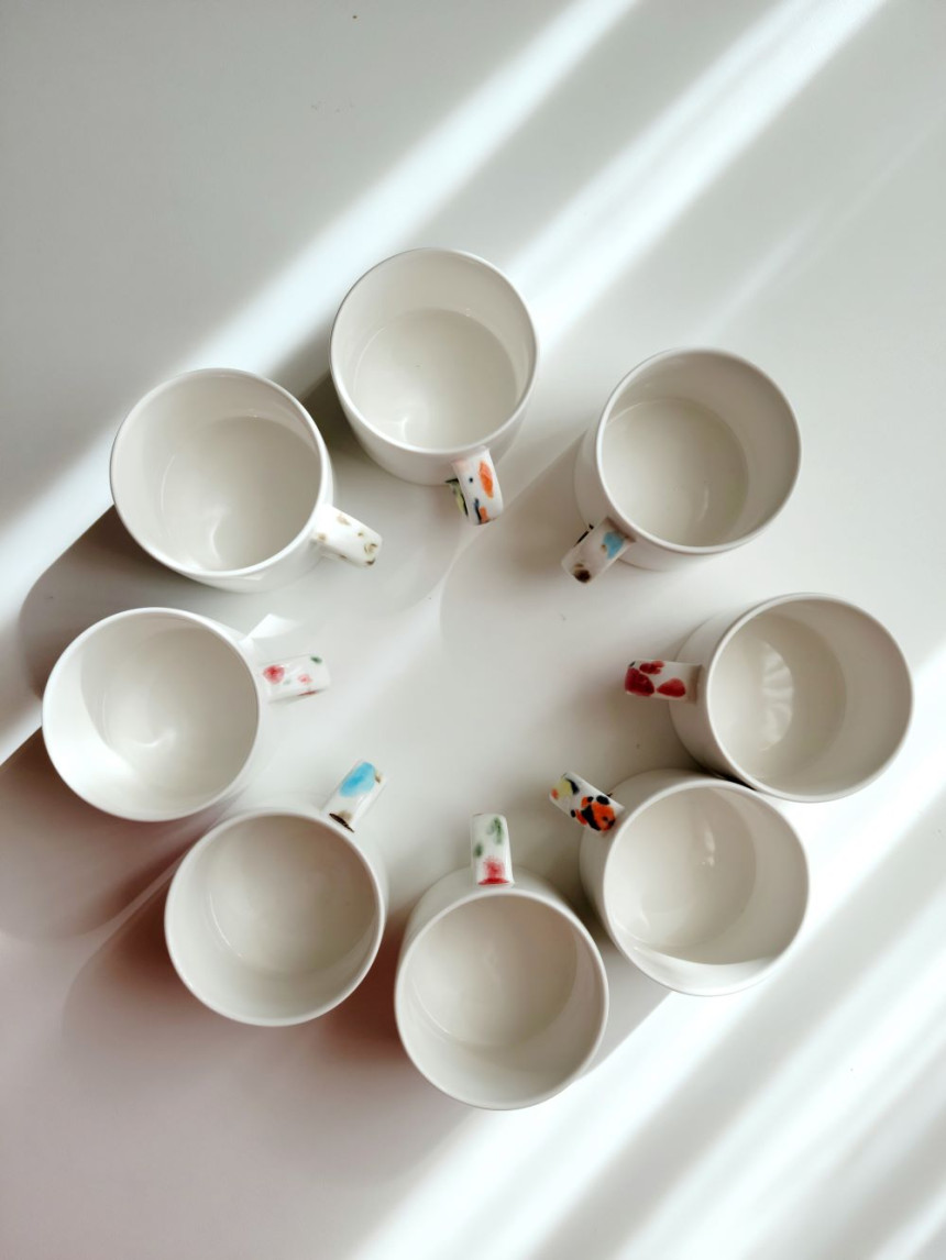 하얀 백자에 손잡이만 여러 가지 색을 입혀