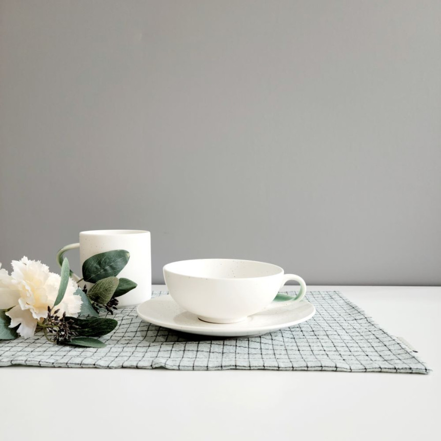 손잡이에 은은한 그린 색을 무늬로 입혔습니다.