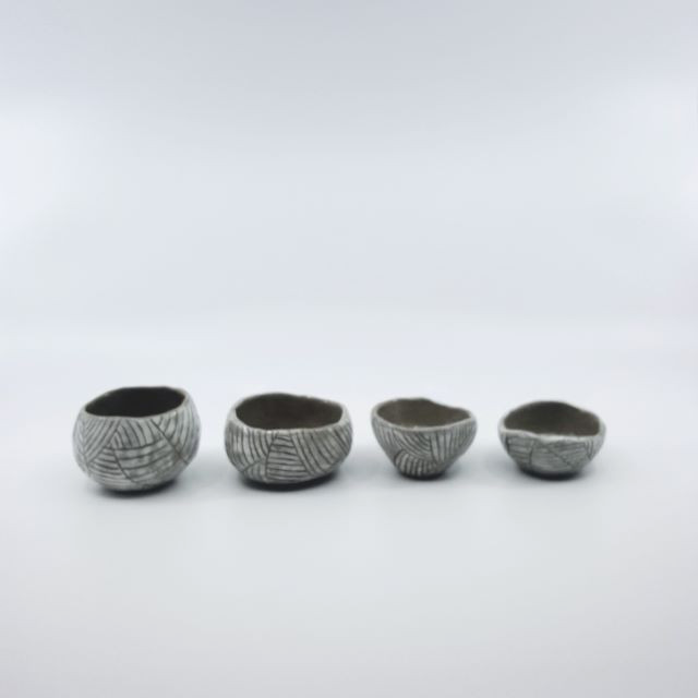 손으로 일일이 빚어서 화장토를 입히고 무늬를 긁어내었으며