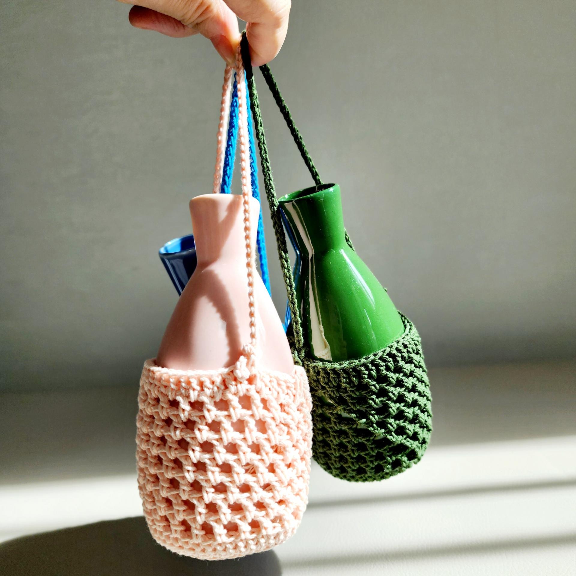 예쁜 뜨개 주머니와 함께 코디해 보세요.