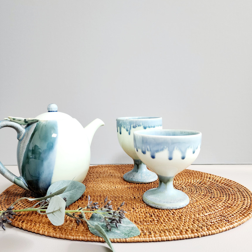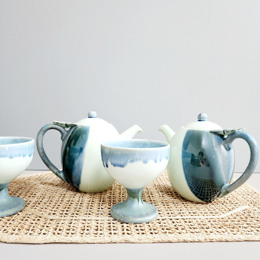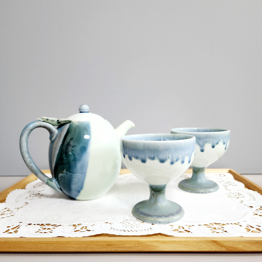 (핸드메이드 제품으로 유약의 흐름에 따라 블루 색 무늬가 조금씩 다릅니다.)