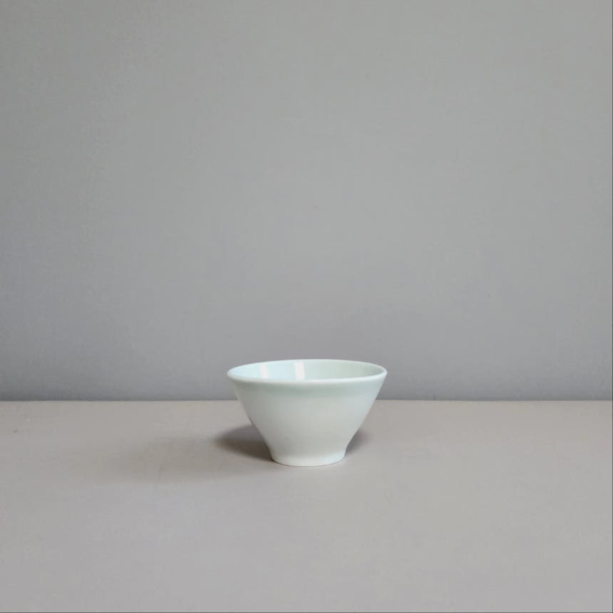 아래로 갈수록 좁아지는 세련된 디자인의 청화백자 연 하늘 그러데이션 식기는
